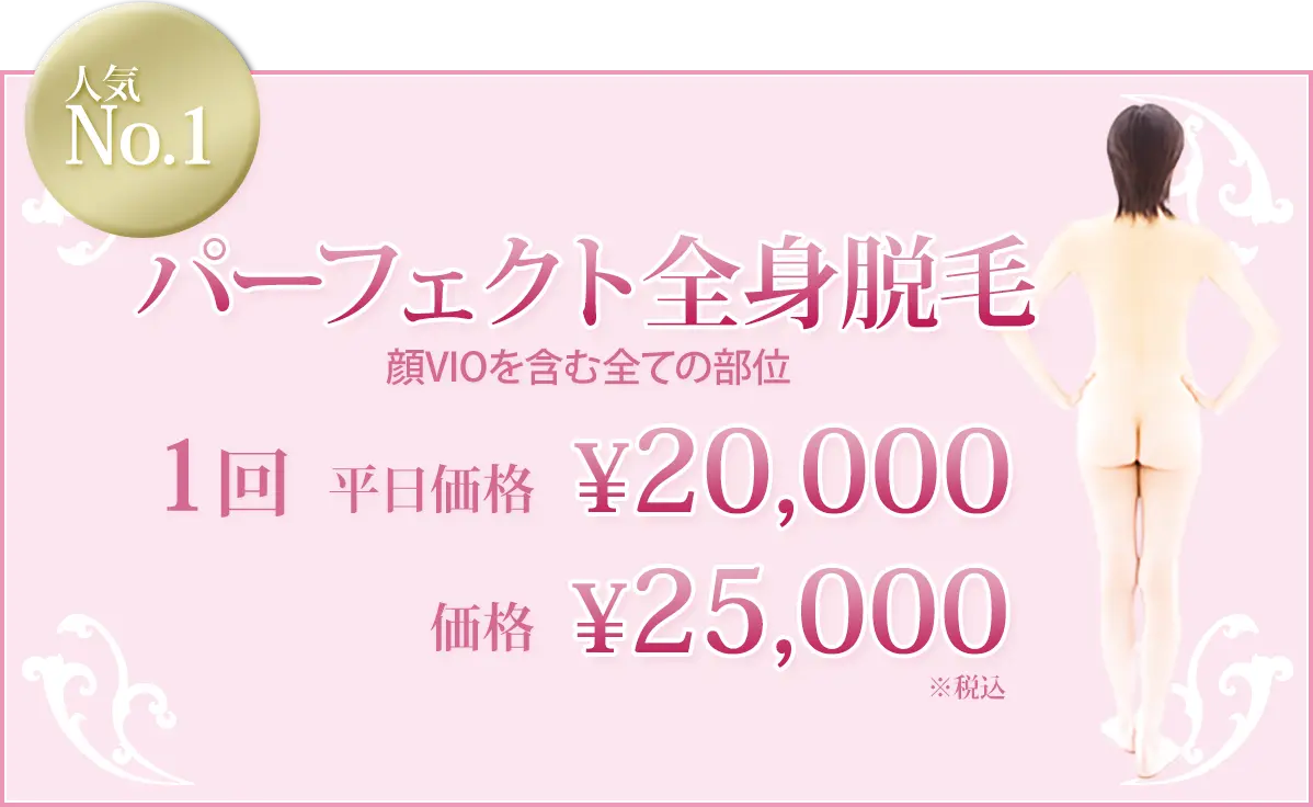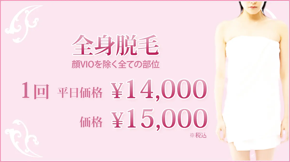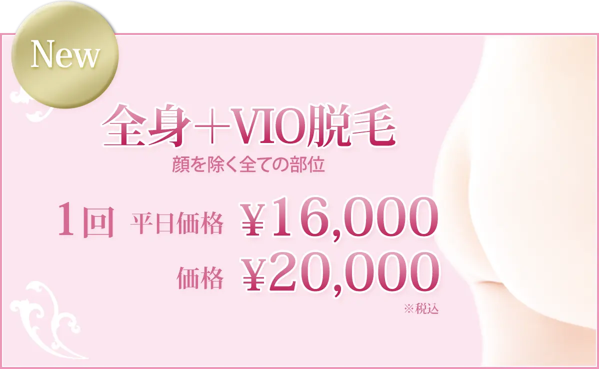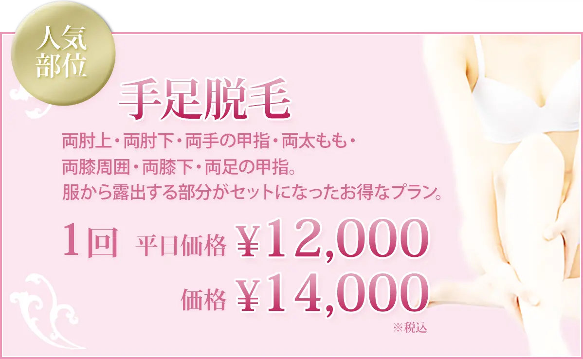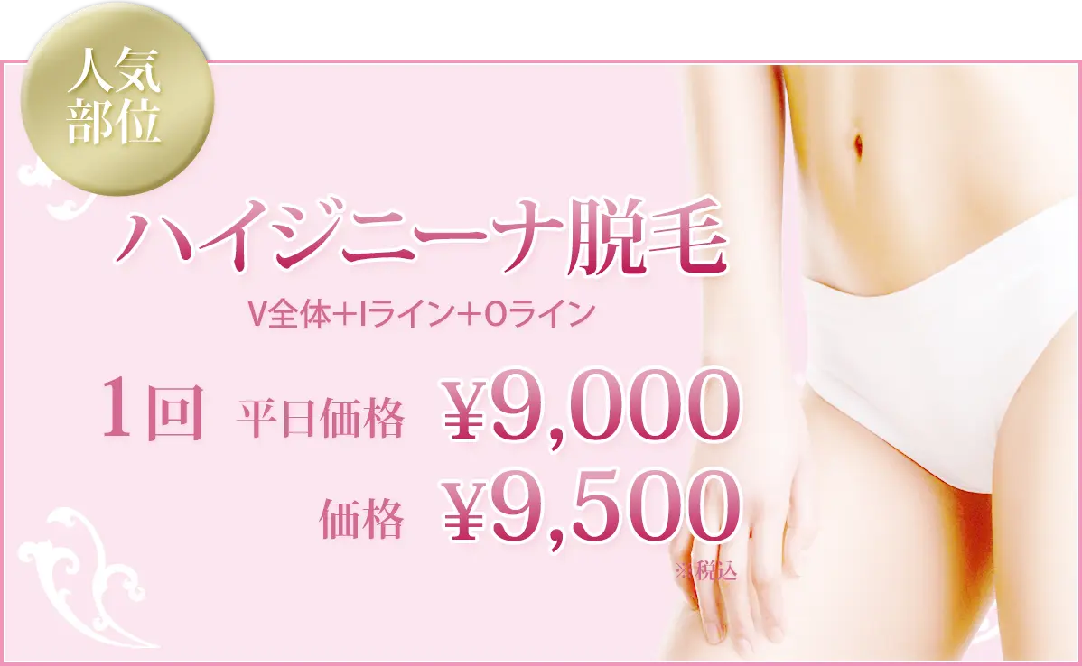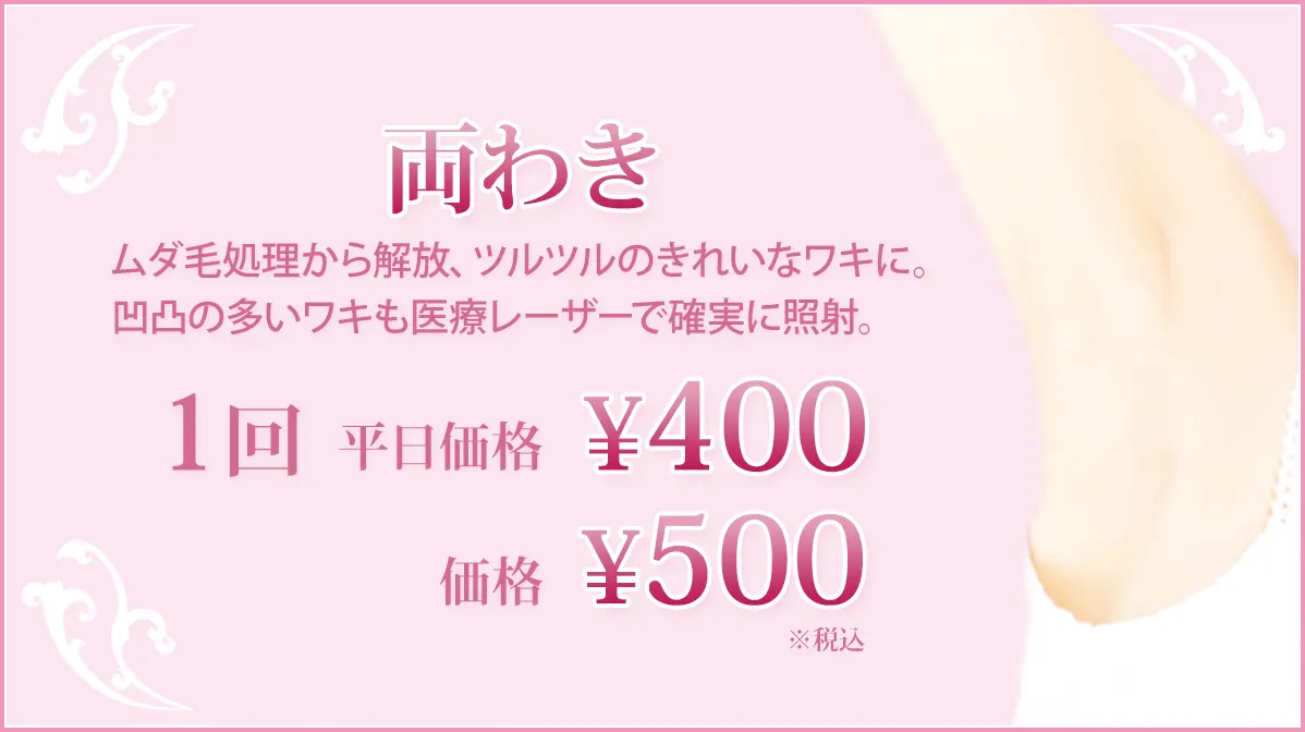 ワキやビキニライン、肛門周囲、背中、うなじ、顔など安全に脱毛できます。